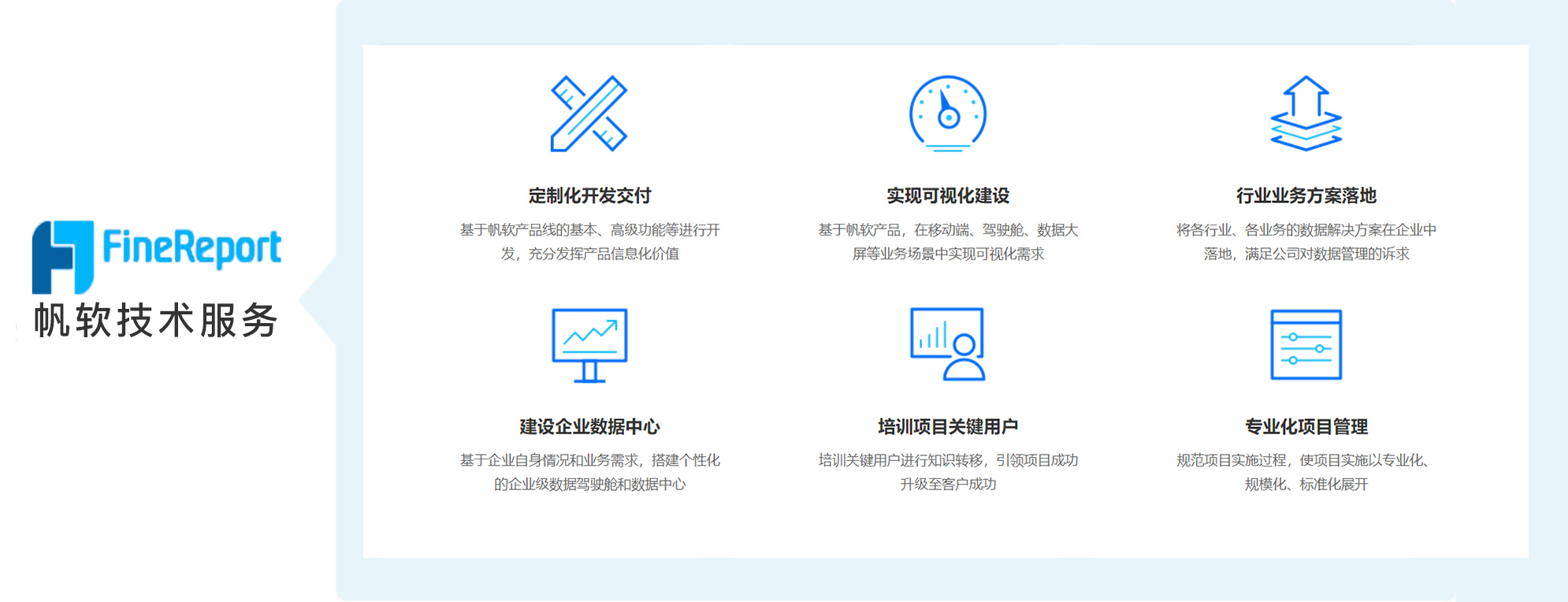 做好准备后,我们将开始实施FineReport BI系统的概念验证(POC)。 收集关于BI系统使用的大量数据和用户反馈,并找出未满足定义请求的原因。 然后对BI系统进行修改和优化以满足要求。 BI系统部署是一个重复的过程,包括需求定义,设计,实施和反馈。 特别是在这一步骤中,我们会在使用过程中遇到各种问题,因此我们会根据反馈,从最初的需求定义开始,不断地改进整个流程。